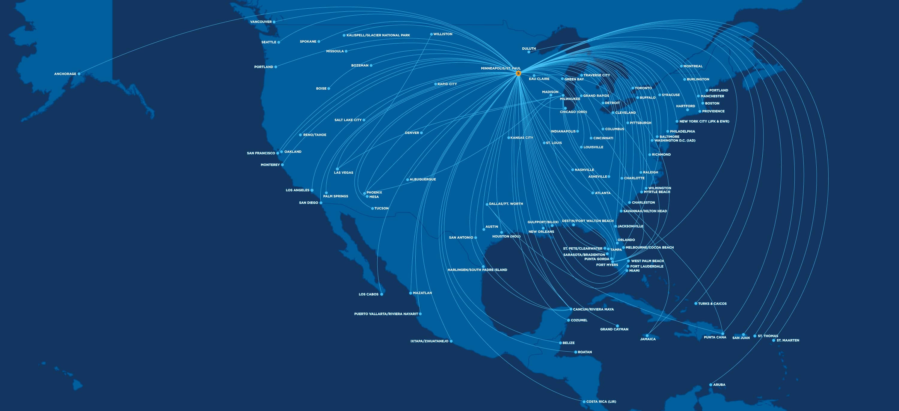 For instance, Sun Country Airlines in the U.S. uses MSP airport as its main hub.