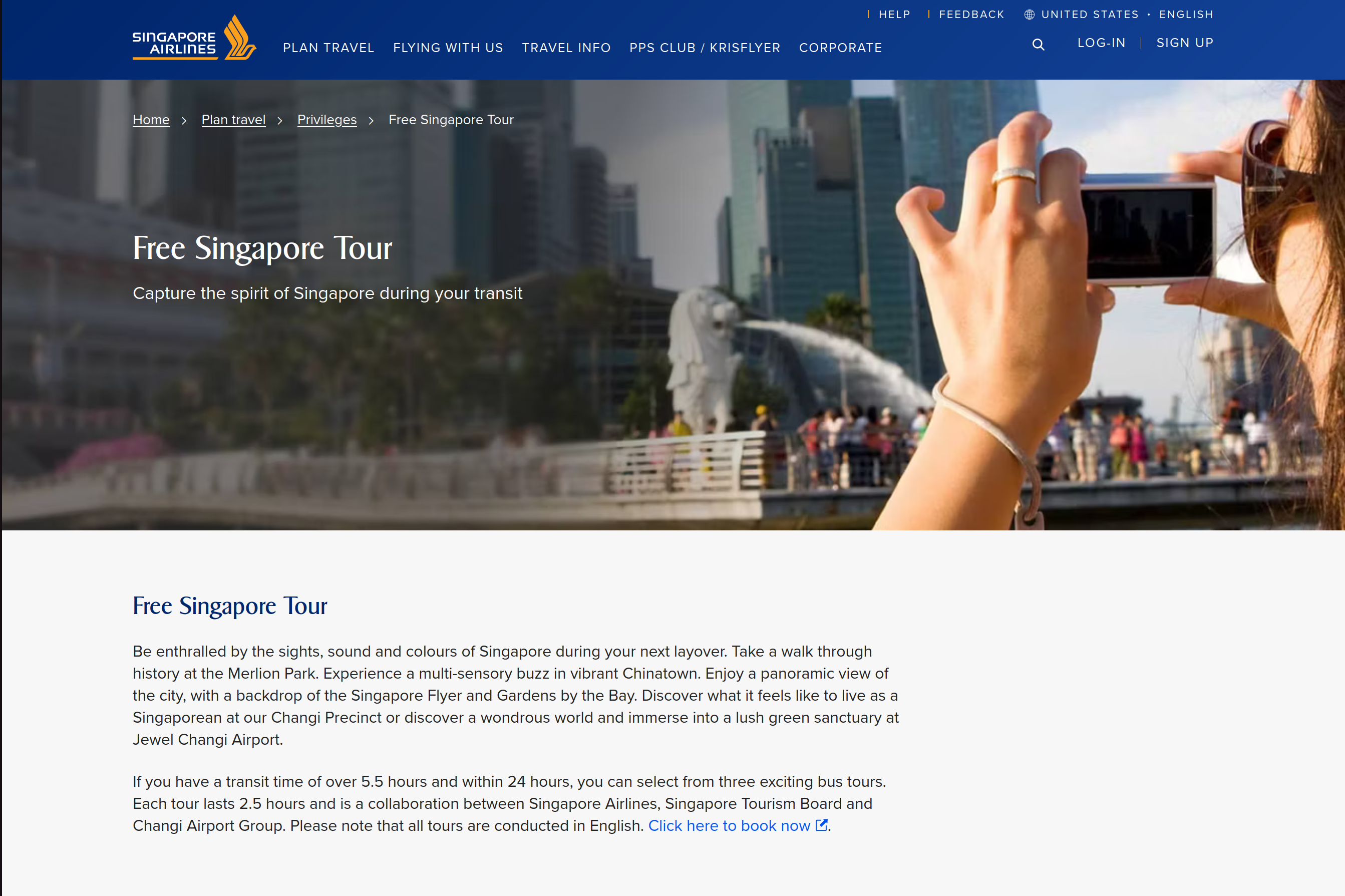 For instance, Singapore airline offers free transit tour for passenges with a transit time of over 5.5 hours and within 24 hours.